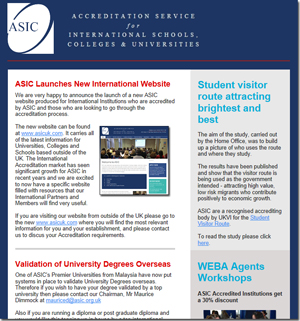 ASIC have now launched their new online newsletter which will be sent out on a regular basis. This newsletter will include information on relevant news stories and events that ASIC feel will benefit its accredited institutions both in the UK and worldwide.